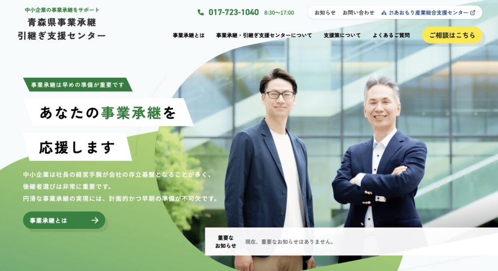 21あおもり産業総合支援センター様の事業である、「青森県事業承継・引継ぎ支援センター」のWebサイトをリニューアルいたしました。